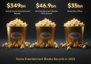 - The UK leads the way: record UK performance sees the UK Media & Entertainment market reach an all‑time high of £34bn (+8 % YoY), with the Home Entertainment sector rising 10% YoY to £5.7bn, the largest value number in recorded history